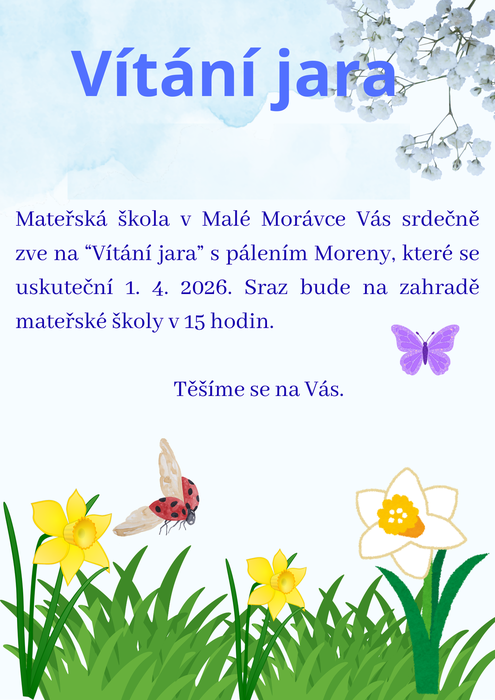 Úvod > Aktuality > Ve středu 1.4. 2026 v 15.00 hod. Vás srdečně zveme na Vítání jara s pálením Moreny